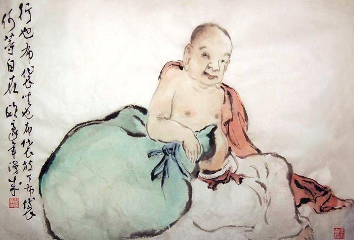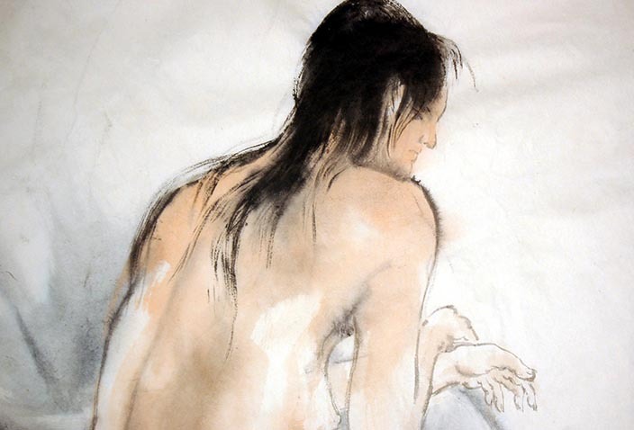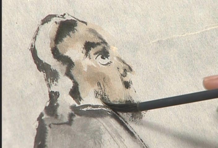 歐老師人物畫彷彿能看出畫中人物鮮活性格,線條精緻流動而徐緩細繼,表現高士清淨出塵的特質;行雲流水的筆法,反應放逸不羈的胸懷,看出他對傳統人物畫的精到功力,用不同的線條筆法來表達人物性格,而又帶有禪意在其中,令人讚嘆。