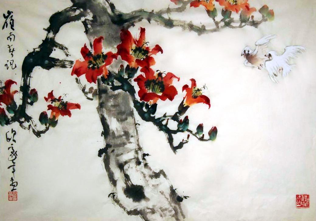 花鳥畫,顧名思義是以花木及雀鳥為主題的繪畫,所以又被稱為「翎毛花卉」。我國花鳥畫在長期的歷史發展中形成了以寫生為基礎,以寓興、寫意為歸依的傳統。歐老師自言:「畫在紙上的每一筆必須是有含義的、有生命、有描述性,而且富於表現的。